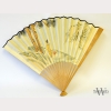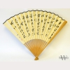 A Chinese Painted Hand Fan, the paper leaf painted to one side with a scholar reflecting on a waterfall, the reverse with inscription, the bamboo guard sticks carved with inscription, with wear to leaf, appx. 12 1/8 in. H.