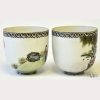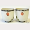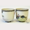 A Pair of Chinese Porcelain Cups, the cups enameled with figures in a landscape and seal, the base with Qianlong marks, with minor firing flaws, hairline cracks, wear to enamel, appx. 2 5/8 in. H, 2 1/2 in. DIA.