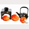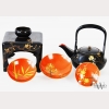 A Japanese Lacquered Tea Set, including a tray, teapot, three bowls and a table, the tray appx. 13 3/4 in. W.