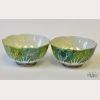 Set of Republic Period Chinese Pak Choi Porcelain, including four small dishes and two bowls, all enameled with insects on pak choi plants, with hairline cracks,wear to feet and enamel, the bowls appx. 3 1/2 in. DIA, 1 7/8 in. H.