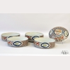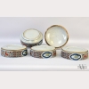 Early 20th Century Chinese Porcelain Bento Box, the bento box with four dishes, enameled to the sides and top with alternating panels of stylized waves and flowering prunus, the top cracked across the diameter, with repairs to cracks in handle, appx. 10 in. H, 7 1/8 in. DIA.