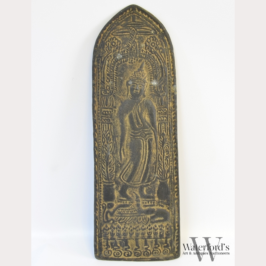 A South East Asian Iron Plaque, possibly 17th Century, the plaque with a Buddha in archway, appx. 12 5/8 in. H.