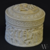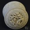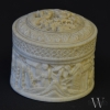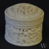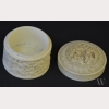 A 19th Century Carved Ivory Snuff Box, the box carved in relief with scenes of Chinese life, small hole to top, chip to foot ring, appx. 1 1/2 in. H, 1 3/4 in. DIA.
