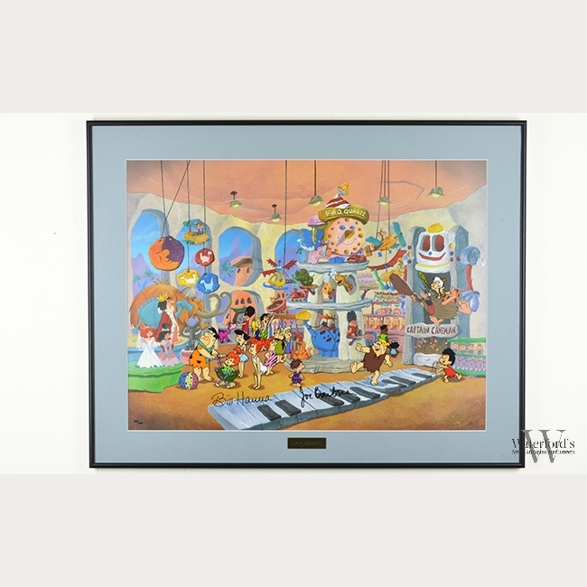 A Flintstone 'FAO Quartz' Limited Edition Cel, with facsimilie background, signed by Bill Hanna and Joe Barbera, numbered 233/500, in frame appx. 29 3/4 in. W, 23 3/4 in. H.