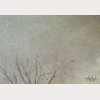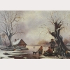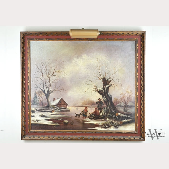 Winter Landscape, Oil on Board, appx. 24 in. H, 26 3/4 in. W, crackle throughout, especially in sky.