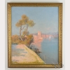 V. Cartier (European, early 20th century), Mediterranean Coastal View, Oil on canvas, 21 � x 18 inches, Signed lower left: V. Cartier. Condition: Needs light cleaning, some old stretcher marks visible on margins.