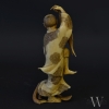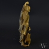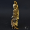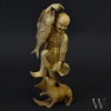 Japanese Meiji Period Ivory Figure, the statue of a man holding a fish in his right hand as he fends off a hungry cat at his right foot, with a small chip to the rope top, a finger on his left hand restored, appx. 5 in. H.