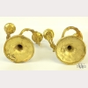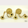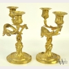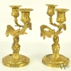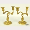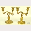 Pair of Continental Gilt Brass Candlesticks, each candlestick with two sockets rising from swirling acanthus wrapped arms, with wear to gilding, one socket loose, appx. 8 1/4 in. H, 7 1/4 in. W.