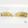 A Group of Scrimshawed Resin Faux Whale's Teeth, including four teeth scrimshawed with 'The Bark Veronica', 'Steamer Thrasher', 'The Ship Laurence', and a prayer for whalers, and a tusk scrimshawed with 'The Bark Cavalier of New Bedford', one with chip to base, the longest appx. 15 1/4 in. H.