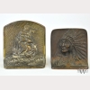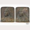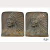 Two Pairs of Antiques Cast Iron Bookends, including a pair molded with a ship on the high seas, and a pair with the bust of an Indian Chief, the largest appx. 5 in. W, 5 1/4 in. H.