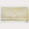 An Engraved Islamic Silver Snuff Box, Ottoman Empire, 18th or 19th Century, the top with engraved designs, the base engraved Inherited by R.H.J. From Caroline Bissel Garmany 1858-1950 Given to B.E.A. 5-18-62, with minor dents, appx. 3 7/8 in. W, 2 1/4 in. D.