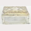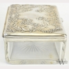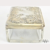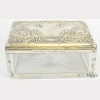 An Early 20th C. American Sterling and Glass Box, the box with a sterling lid decorated in repousse with flowering tendrils, marked Howard & Co, 1905, Sterling near the hinges, the glass bottom with star burst, appx. 3 1/8 in. H, 6 7/8 in. W, 5 1/4 in. H.