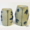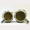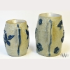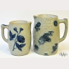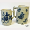 A Pair of American Arts and Crafts Pitchers, late 19th Century, from the Utica Stoneware Company, New York, the pitchers with relief carved cobalt blue flowers on a mottled grey ground, with wear, firing flaws, the largest appx. 8 in. H.