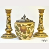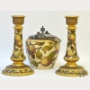 English Staffordshire Candlesticks & Biscuit Jar