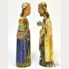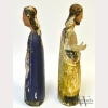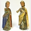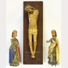 A Spanish Colonial Painted Wood Holy Family Group, 18th/19th Century, including Christ Crucified, and standing figures of Mary and Joseph, all with damage and missing limbs, the largest appx. 18 in. H.