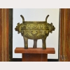 A Chinese Bronze Li Vessel in Wood Case