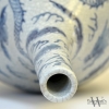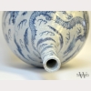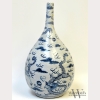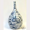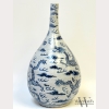 Chinese Ge Ware Bottle Vase, the pear shaped body with slim, short neck covered all over in a ge type crackle glaze and decorated with four cobalt blue dragons chasing flaming pearls amidst clouds and flames, the base with underglaze blue Tongzhi marks, the vase with repair to mouth, chip to glaze, appx. 18 in. H, 9 7/8 in. DIA.