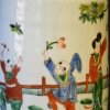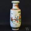 A Chinese Wucai Porcelain Bottle Vase, the bottle vase enameled with a woman and boys in a landscape, with hairline crack to body, wear to foot, firing flaws, appx. 11 5/8 in. H.