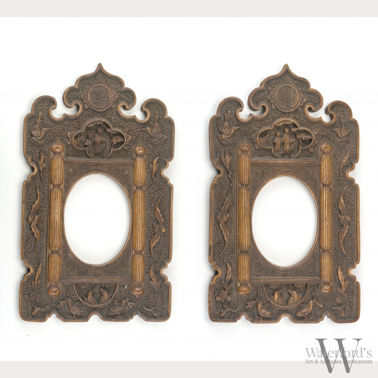 A Pair of Chinese Export Carved Wood Frames