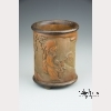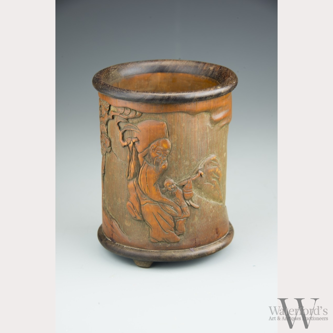 A Chinese Carved Bamboo and Wood Bitong Brush Pot