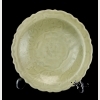 Ming dynasty (1368-1644). The flaring fluted sides rising to an everted barbed rim, supported on a short footring. The center incised with a lozenge diaper and the cavetto with a band of lotus scroll, covered in a soft olive green semi-translucent celadon glaze that pools in the recesses to highlight the design and thinning at the edges. Approx. 1 � by 9 in. diam., 3.8 by 22.9 cm. diam.