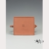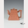 Late 19th/early 20th century, late Qing dynasty/ early Republican period. The teapot of a squared bell shaped form and flat rectangular pierced cover surmounted with squared loop knob, applied with a squared swan-neck, and squared rectangular "C" handle with curved top flange, one side with molded sixteen character inscription in seal script or zhuanshu, the clay a rich reddish-brown tone, with square zhuanshu "Licheng" artist's seal mark to base and oval clerical or lishu script "Runji" workshop mark to base of lid. From a Montreal collection, previously in the collection of esteemed connoisseur Sha Zhiming. Approx. 5 1/8 by 6 5/8 in., 13 by 17 cm.