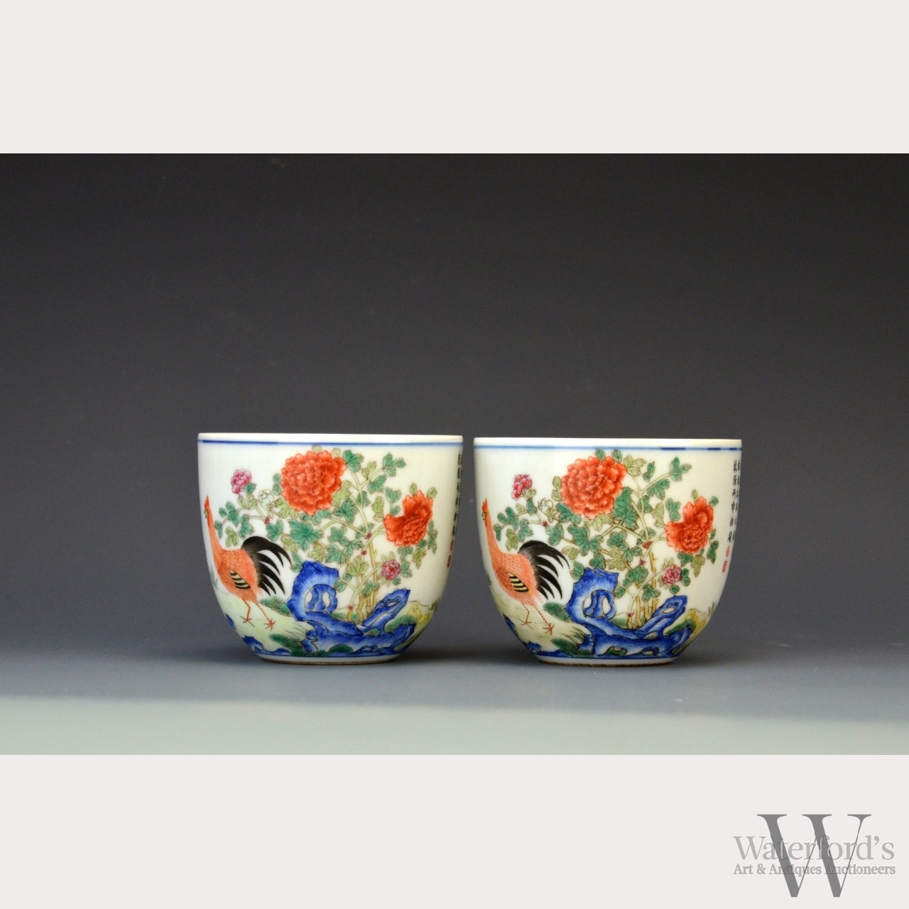 A Pair of Chinese Famille Rose 'Jia Chang' Cups
