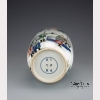 20th century, Republic period. The tall rouleau vase decorated in Kangxi style famille verte enamels to depict generals in conversation with their respective companies on the side holding spears, swords, an umbrella, and a horse. The shoulder decorated with a lozenge pattern and peonies and rocks around the neck. Six character underglaze blue xingshu Kangxi mark in a double blue circle to base. Approx. 14 3/4 by 6 3/4 in., 37.5 by 17 cm.