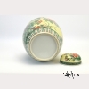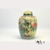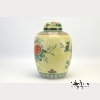 19th century, Qing dynasty. The ovoid body on a foot ring with a dome lid, decorated in the Kangxi style with famille jaune overglaze enamels to depict a phoenix amidst flowering hydrangea, peonies, magnolias, and chrysanthemums around the body, with a diaper border framing the four scholarly objects around the neck; more flowers and butterflies on the lid. Unmarked base. Approx. 10 � by 6 � in., 26 by 16 cm.