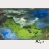 After 1976. Ink and color on paper. A vibrant blue and green landscape with a white mountain peak rising above a small village. Gold poetic inscription to lower right "xia shan yu yu" or "summer mountain before rain," with his signature "ai weng," and three seals of the artist to upper left, upper right and lower right. Inscription on reverse repeats poetic title inscription and indicates it is number twenty seven. Provenance: From the collection of Li Shun Hua, student of Zhang Daqian. Approx. 15 1/2 by 23 3/8 in., 39.5 by 59.5 cm.