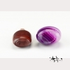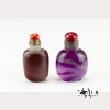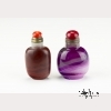 Late 19th and early 20th centuries, Qing dynasty and later. Two snuff bottles. The first is a Qing dynasty red jasper stone snuff bottle of flattened oval form resting on a raised oval foot. With a red Peking glass stopper, brass collar and spoon. The other, a 20th century bottle, is quartz agate of flattened round form resting on a raised oval foot with magenta and white banding and natural crystallization. With a red Peking glass stopper set in a brass collar with spoon. From the Christian Collection, Middleborough, MA. Largest approx. 2 7/8 by 1 1/2 in., 7.4 by 4 cm.