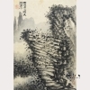 20th century. Ink on paper, album leaf, mounted on paper. Using wash and a dry brush to create "mi" dots, Shi Qing depicts a traveler overlooking a mountain peak in a landscape. Poetic inscription to upper left with artist's seal, two more seals to lower right. Approx. 13 1/4 by 9 3/8 in., 33.7 by 23.8 cm.