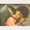 20th century. Oil on canvas, framed. H. Cheang was a native of Guangzhou, where he taught until 1950, before residing in Kowloon. Here he depicts a young child rubbing her eye and carrying a sleeping infant wrapped in a green blanket on her back. Signed H. Cheang to lower right. Approx.17 1/2 by 23 1/2 in., 44.5 by 60 cm.