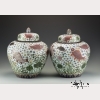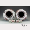 20th century, Republic period. A pair of large cloisonne jars with domed lids worked in copper wire and polychrome enamels to depict multi-colored carp swimming among aquatic plants against a light blue grownd sprinkeled with flowers. Cloud border around necks with lappets around fnial and foot ring. Approx. 17 1/2 by 11 in., 44.5 by 28 cm.