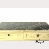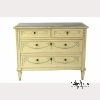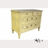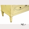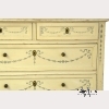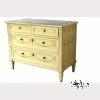 Late 19th century. The cream colored commode with mint stenciled ribbon and bow decoration to the front and sides. With two small drawers, two larger drawers and a green marble top. Approx. 39 by 49 1/2 in., 99.1 by 125.9 cm.