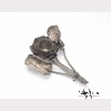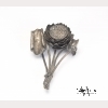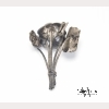 19th century. A silver bouquet of a lotus flower, bud, and leaves. The central flower fabricated from several thin layered petals, the center of which forms a lidded box. The hinged lid consists of stamen and a frog finial, which opens to reveal a glass-lined well. A small spider sits on the end of the bundle of tied stems. Finely chased details. Approx. 6 1/2 by 4 1/2 in., 16.5 by 11.5 cm.