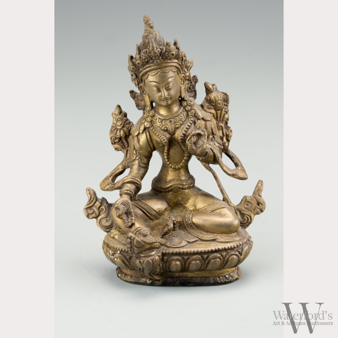 A Sino-Tibetan Gilt Bronze Green Tara Bodhisattva