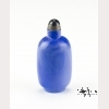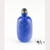 Mid-19th/early 20th century, Qing dynasty. The opaque blue marbleized glass snuff bottle of flattened oval form resting on a raised, flat foot. With a blue goldstone, also known as aventurine glass, stopper, with brass collar and spoon. From the Christian Collection, Middleborough, MA. Approx. 2 7/8 by 1 1/4 in., 7.4 by 3.2 cm