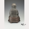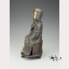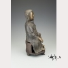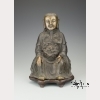 Ming dynasty (1368-1644). A gilt and blackened bronze statue of Song dynasty general Yue Fei (1103-1142), who fought against the Jurchen of the Jin dynasty, who was posthumously given the names Zhongwu in 1162 and Wumu in 1179 by Song Emperor Xiaozong, and the name E Wang by Song Emperor Ningzong in 1211. Here he sits elegantly on a chair with a serene face, elongated earlobes, a long pointed beard and long hair running down his back. The front of his robe is heavily adorned with a dragon in relief. His hands rest gently on his knees and his bare feet peek out from beneath his robe. His face, hands, and feet gilt. On a wooden stand. Approx. 11 3/4 by 8 in., 30 by 20.3 cm.