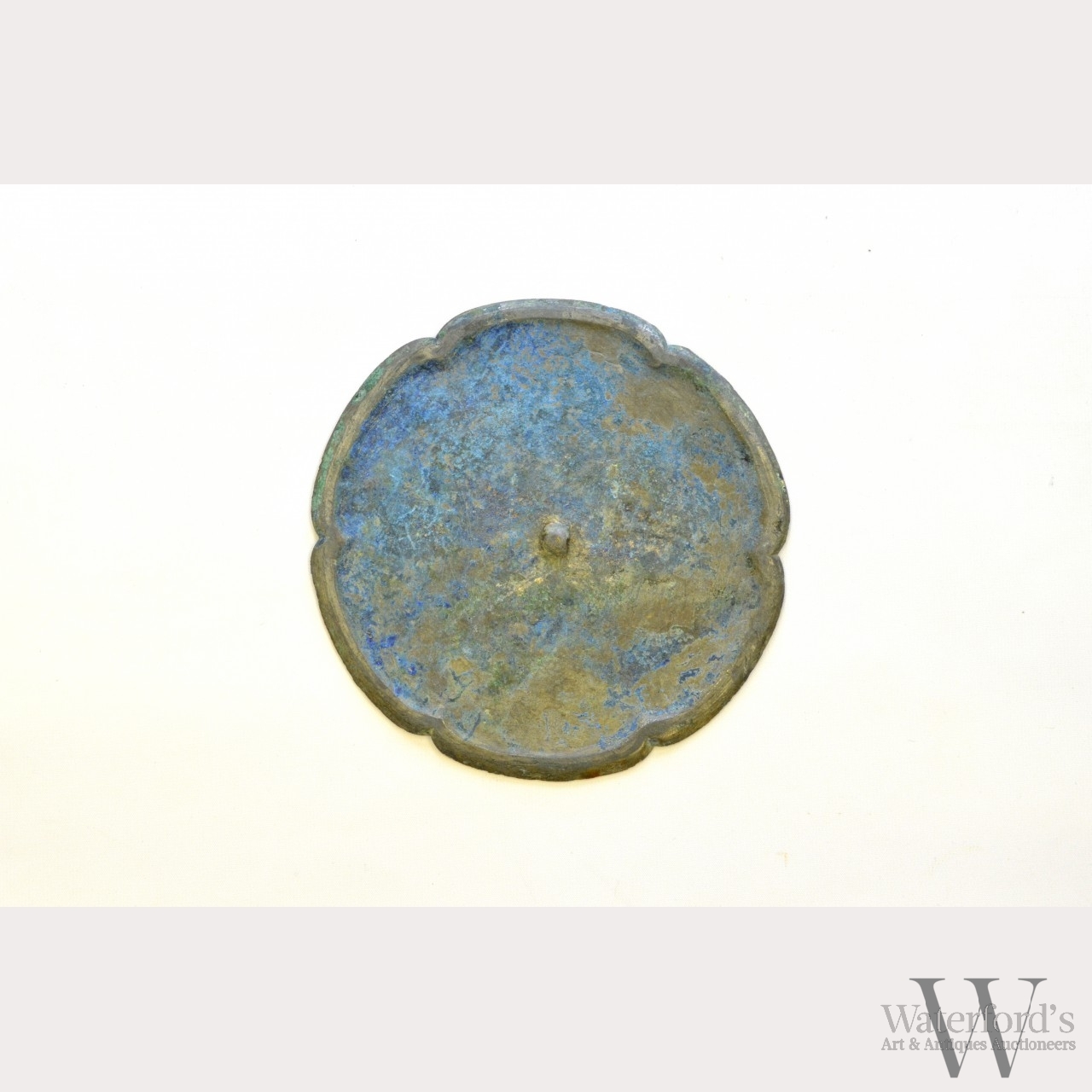 Song Dynasty (960-1279). The octalobed mirror cast with a central small pierced knob. Provenance: From the collection of a prominent American military official stationed in Singapore in the mid-20th century. Literature: At Home Singapore Style: distinctive interiors & decorating sources, American Women's Association of Singapore, 1994. Exhibited: College of William & Mary, Exhibition of Chinese Bronze Art held by the Asian and Middle Eastern Studies Department, 2000. Approx. 7 � in. diam., 19 cm. diam.