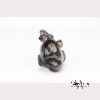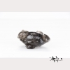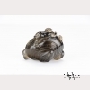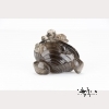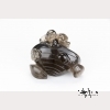 An arrangement consisting of one large clam shell resting upon a small clam shell. Two other clam shells, a conch shell, and a frog are piled on top of the large clam shell, with a boy climbing up its side. The semi-translucent smoky quartz crystal with natural inclusions. Approx. 2 by 3 3/4 in., 5.2 by 9.5 cm.