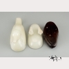 18th century, Qing dynasty. The censer carved into the form of a duck standing on two webbed feet, head raised with mouth open to show its tongue, tail and wing feathers finely cared in detail with pierced areas within the wings, the base consisting of the lower half of the body and legs, the lid consisting of the upper body including the wings and tail, smoothly carved and polished interior, the stone semi-translucent white jade with areas of opaque inclusions, with carved wooden stand. From a Montreal Collection, acquired in the 1960's. Without stand approx. 4 1/4 by 6 in., 10.9 by 5.2 cm.