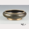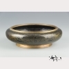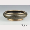 The bowl with a black ground showing a sinuous dragon with the flaming pearl to the interior, the exterior with a ruyi head border and two additional dragons, with a four character mark to the base. Approx. 2 1/2 by 7 1/2 in. diam., 6.5 by 19.2 cm. diam.