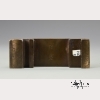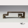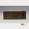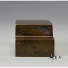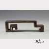 17th century. The wrist rest of stepped cloud or bracket design, bronze with silver inlay to all sides, depicting plum blossoms and archaic inscription on the top side, sides inlaid with silver bands, soso mark in silver on base. Approx. 1 by 3 3/8 in., 2 1/2 by 8 1/2 cm.