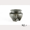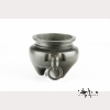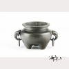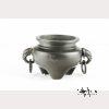 The censer with a silver inlay geometric design to the exterior, with two handles to either side in the form of elephant heads, with loose rings, the base with three character marks. Approx. 3 5/8 by 4 1/2 in. diam., 9.4 by 11.5 cm. diam.