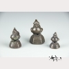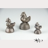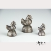 19th century. The lot includes three graduated bronze opium weights of mandarin duck form. The tallest approx. 2 1/2 by 1 5/8 in., 6.4 by 4 cm.
