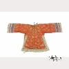 The silk, red ground robe embroidered in colored and fold thread to show floral splays, phoenixes and ruyi mushrooms, with abstract and floral borders to the sleeves and robe edges. Approx. 42 1/4 by 82 3/4 in., 107.2 by 210.2 cm.