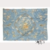 The blue silk ground with embroidered floral sprigs, Buddha's hands and bats surrounding the central floral motif, with an alternating ruyi head and bat quadrilobe border surrounding two walnuts from which flowering prunus, clouds and auspicious symbols emerge, with a red silk cloud backing. Approx. 43 1/2 by 57 5/8 in., 109.8 by 146.3 cm.