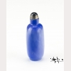 Mid-19th/early 20th century, Qing dynasty. The opaque blue marbleized glass snuff bottle of flattened oval form resting on a raised, flat foot,with an aventurine stopper and brass collar and spoon. From the Christian Collection, Middleborough, MA. Approx. 2 7/8 by 1 1/4 in., 7.4 by 3.2 cm