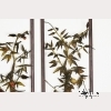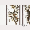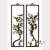 The sculptures with wood, metal and stone elements in a frame. Approx. 25 by 7 3/4 in., 63.4 by 19.6 cm.